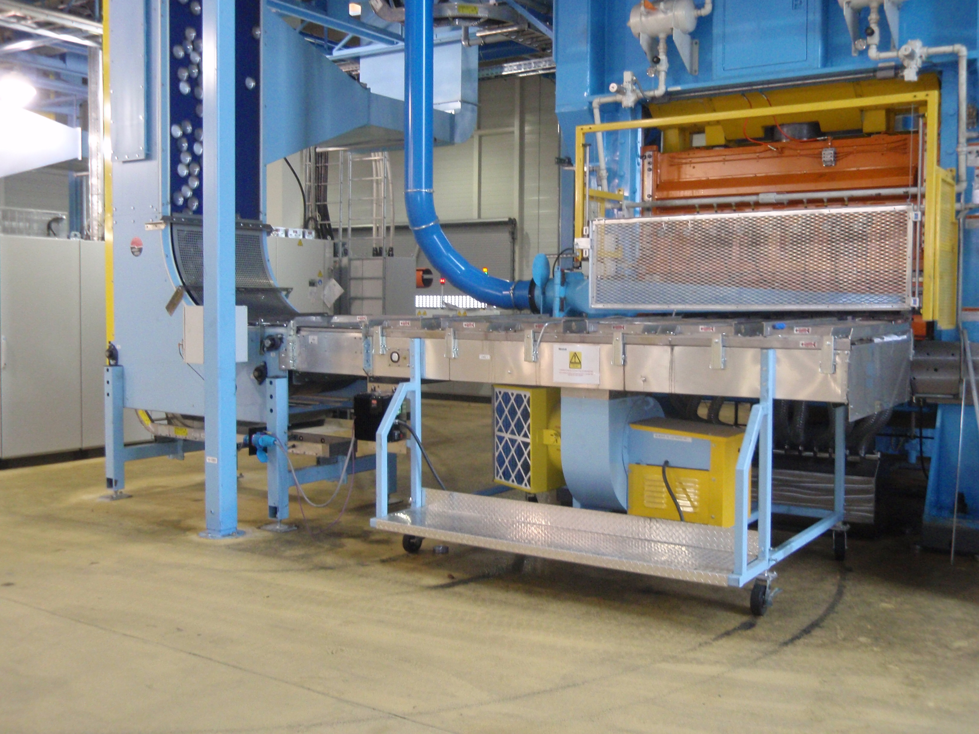The conveyors — which move product mechanically, by compressed air, through the company’s registered “Tunnel Track” system, by cable or gravity — are made and assembled by hand. A computer-guided laser cuts stainless steel pieces which are then welded by hand.