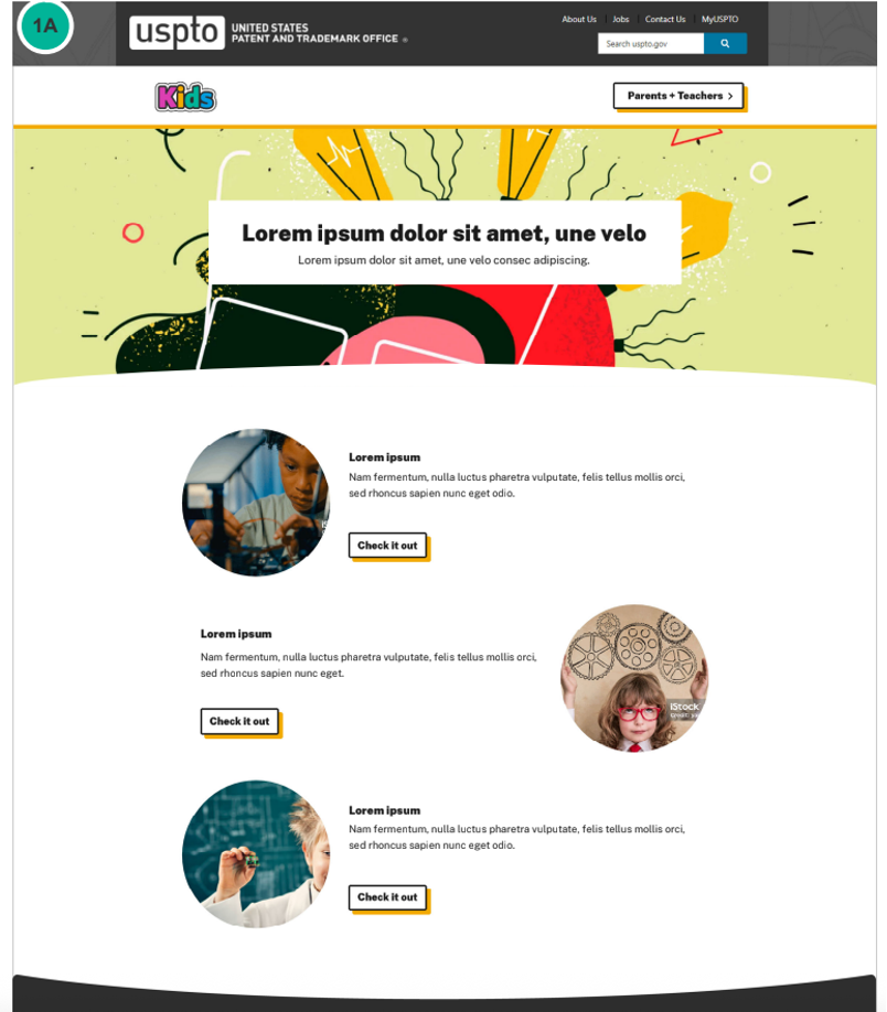 Key Takeaway: These designs were the actual initial designs that sparked the fruition and design of the new USPTO Kids website!
