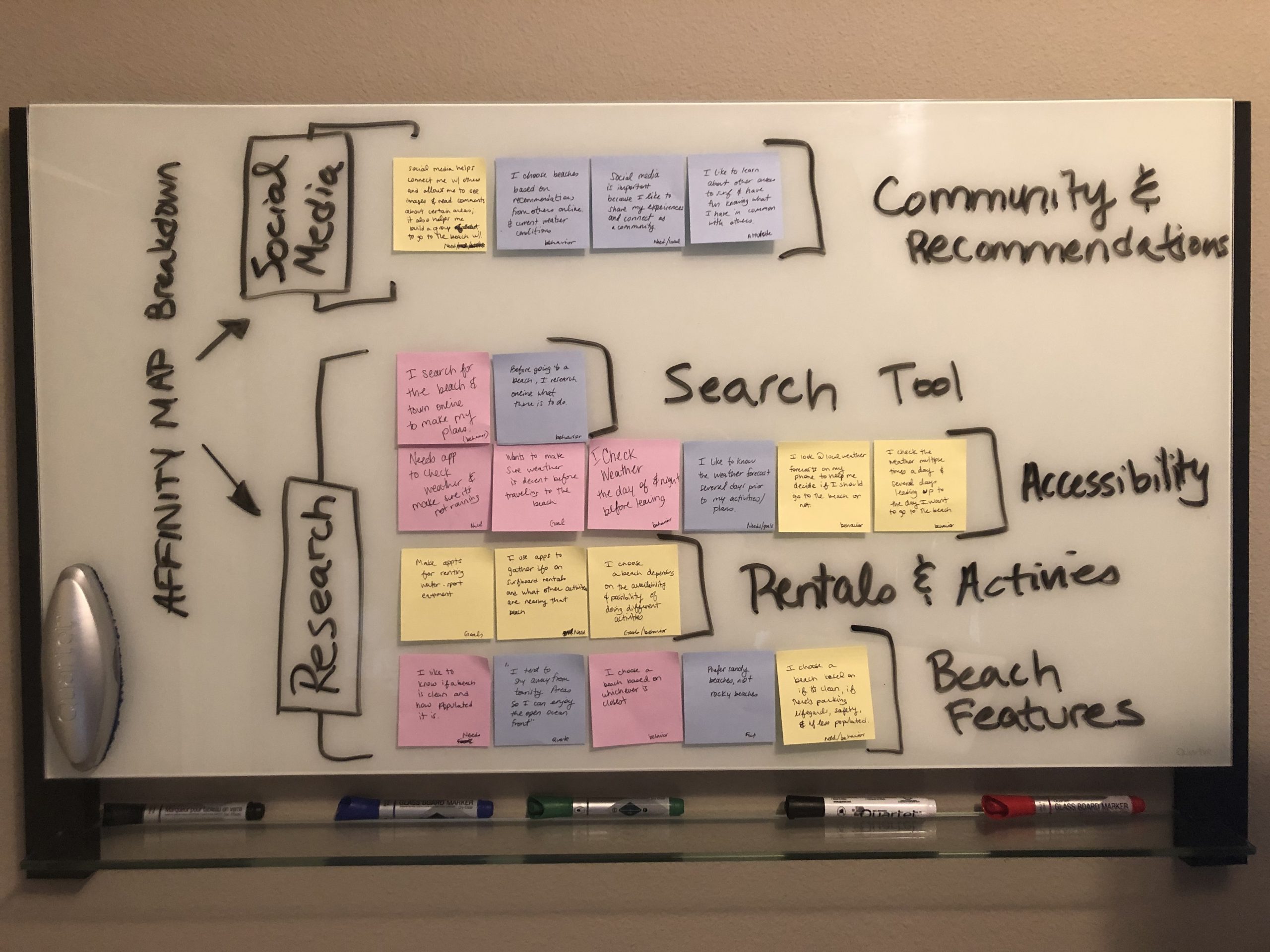 Key Takeaway: Beach Pictures and Beach Details (rentals, nearby surroundings, etc) were updated to be grouped together. Initially, pictures were placed alongside video streaming. However, the card sorting helped show that users actually grouped beach pictures with details about the beach.