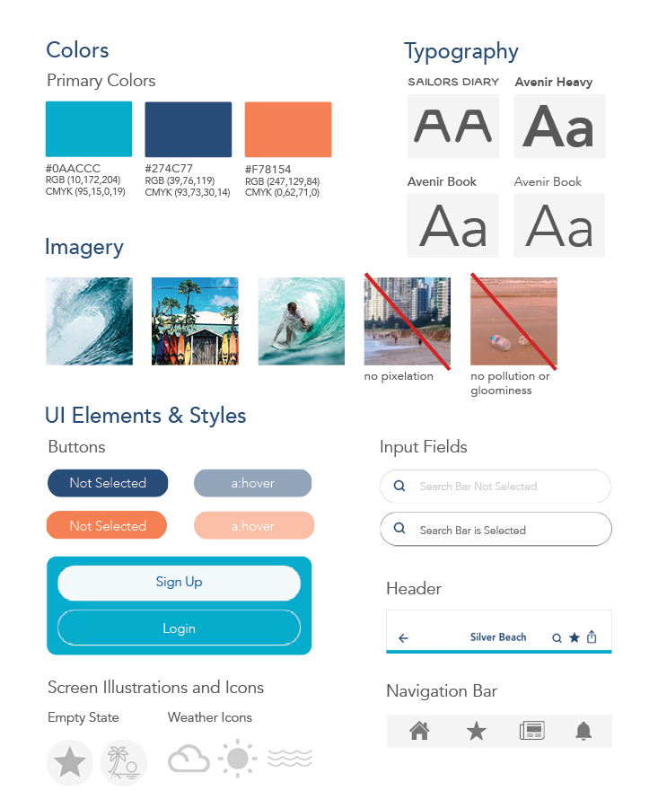 To ensure Beach Bum's design and user experience is consistent across multiple platforms and devices going forward, a design language system was created.